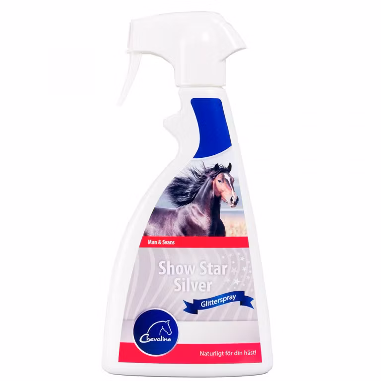 Show Star glitterspray lämpar sig både för att dekorera hela hästen och för att applicera mönster med hjälp av mall eller pensel. Sprayen kan även sprayas på känsliga hästar.