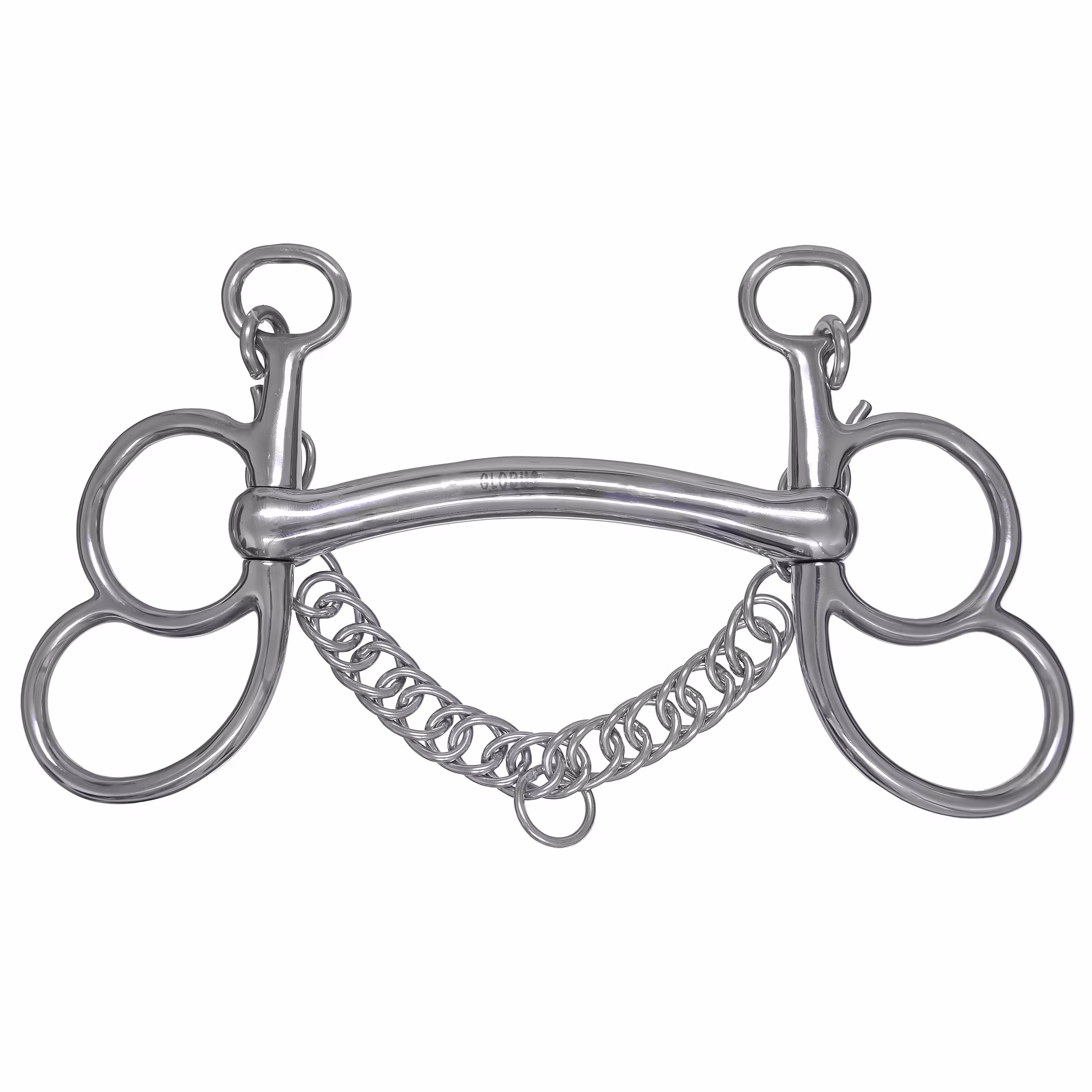 Postkandar i rostfritt stål med stång, 2 ringar på skänkeln inkl kindkedja och krokar.